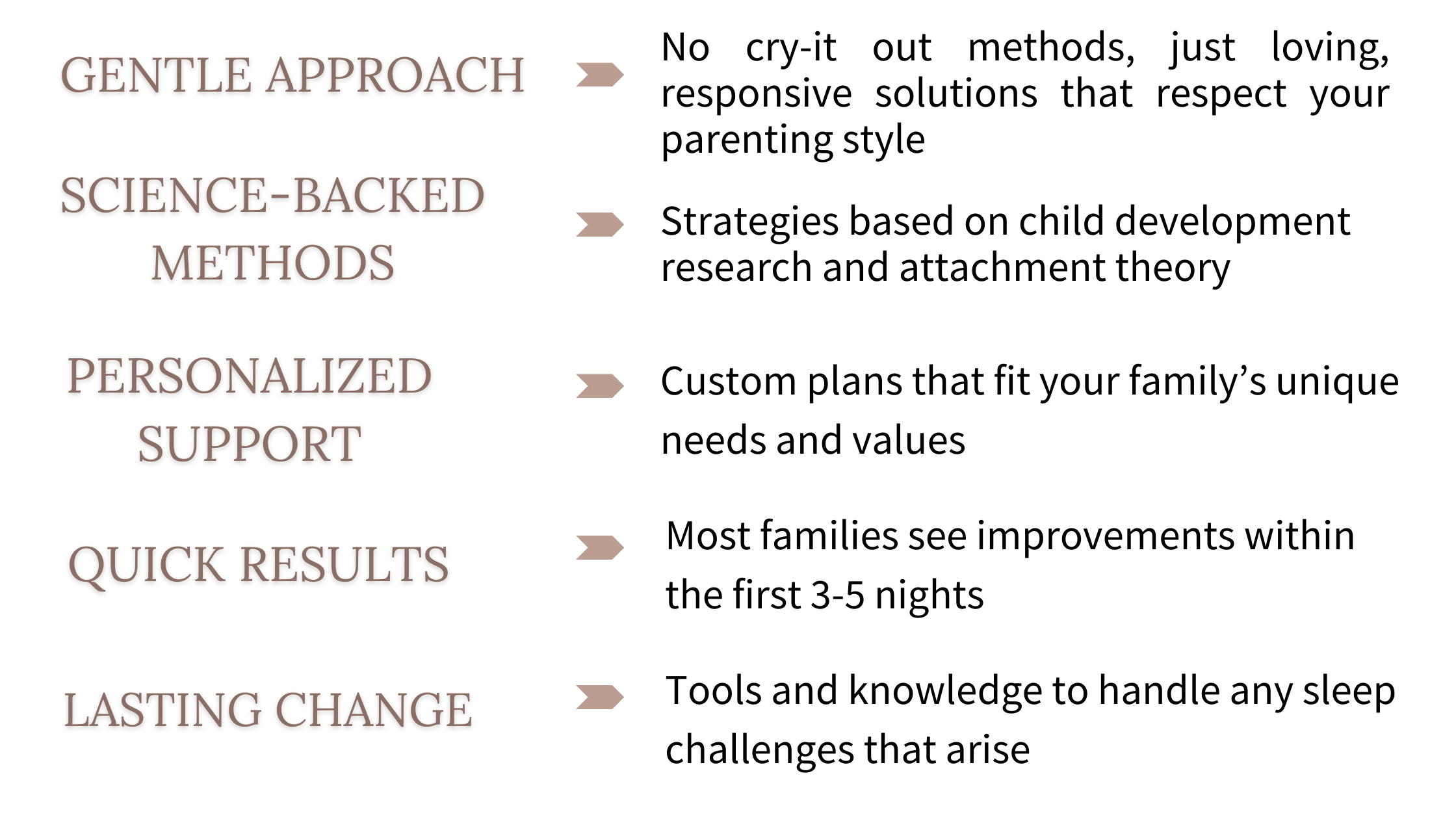 Now I help parents like you achieve the sleep you're dreaming of while maintaining the loving connection your little one needs